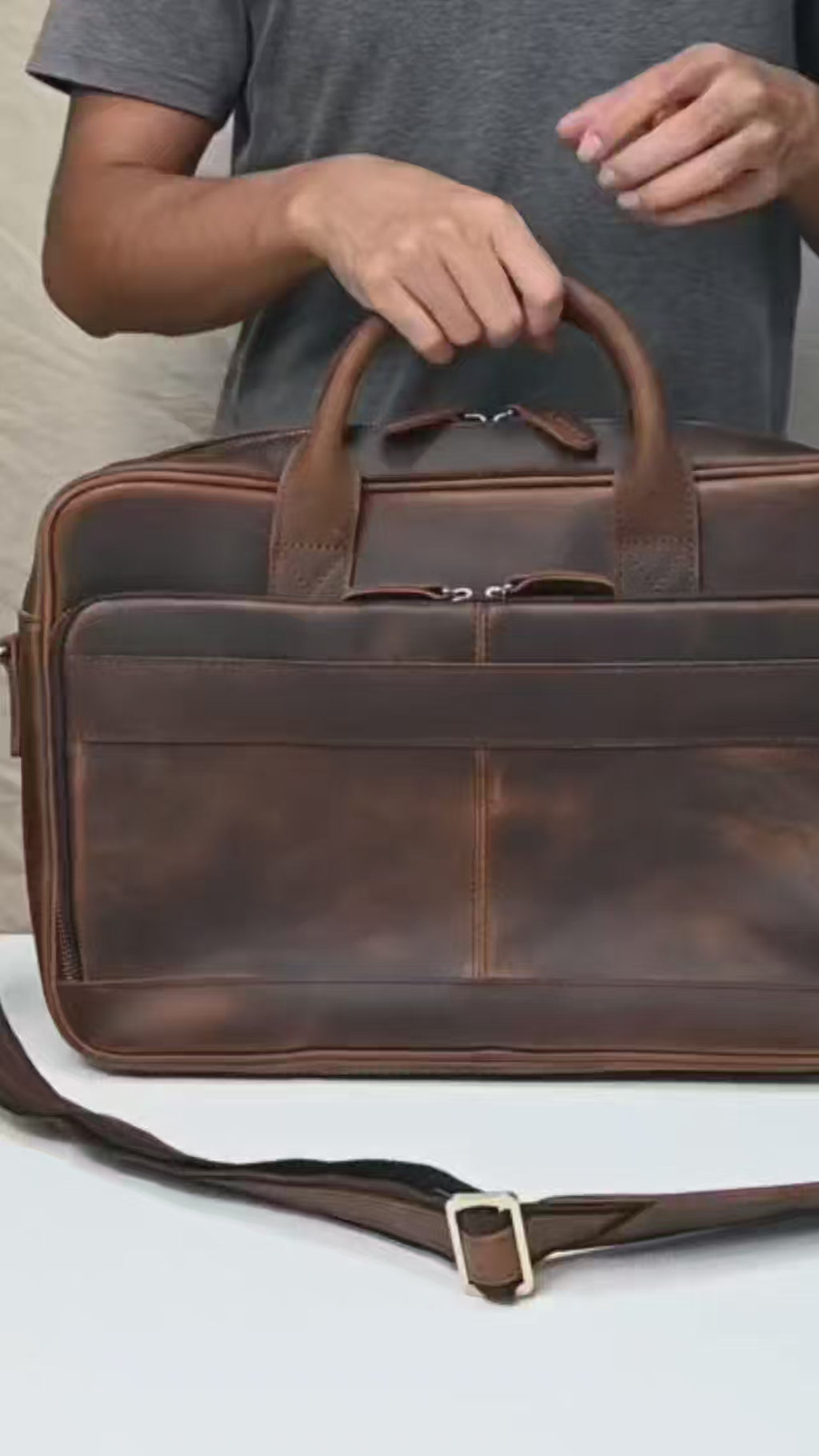 Produzida em couro legítimo de alta qualidade, disponível nas cores marrom, preta e caffè, a Eternity traz acabamento refinado e resistência excepcional. Seu design versátil possibilita o uso como pasta de mão ou bolsa de ombro, com alças removíveis que garantem conforto e flexibilidade.